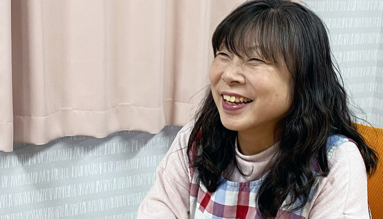 2019年7月入社。ウーリー設立後初となる、就労継続支援B型事業所「ウーリー春日部」のオープニングから、パートスタッフとして携わる(現在は正社員として勤務)。事業が軌道に乗る前からウーリーを知るパイオニア的存在だが、プライベートでは家庭を大事にする2児の母である。※2022年3月取材